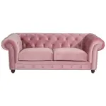 Dieses elegante MAX WINZER 2,5SitzerSofa im Chesterfield Style in Rosa begeistert durch seinen typisch britischen Look. Von extrabreiten geschwungenen Armlehnen über dekorative Nieten bis hin zu einer aufwendigen Knopfheftung bedient es sich charakteristischer Designelemente, um das Ambiente in Ihrem Wohnzimmer mit detailreicher Gemütlichkeit zu veredeln. Großen Anteil am stilsicheren Gesamtbild des markanten Polstermöbels hat der abrieb sowie scheuerfeste Bezug aus SamtVelours, welcher der Oberfläche einen weichen Touch verleiht. Zur stimmigen Abrundung des optischen Gesamtkonzepts steht die ausdrucksstarke Couch auf gedrechselten Buchenholzfüßen, die in dunklen Nussbaumfarben lackiert sind. Wer hier Platz nimmt, darf sich auf wohligen Komfort freuen. Denn die losen Sitzkissen mit Polyetherschaumkern und Flocksoftabdeckung werden zusätzlich von einer Gurtunterfederung unterstützt. In der Rückenlehne trägt das Zusammenspiel von Spanngurten und Polyetherschaum mit Diolenabdeckung zu bequemer Entspannung bei. Da auch der Rücken echt bezogen ist, stehen Ihnen hinsichtlich der Positionierung des formvollendeten Hinguckers für ein kultiviertes Zuhause alle Optionen offen. Mit diesem ca. 216 cm breiten MAX WINZER 2,5SitzerSofa im Chesterfield Style geben Sie ein charmantes Statement für standesgemäße Behaglichkeit ab!Wohnzimmer / Sofas & Couches / Sofas / Textilsofas