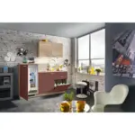 Dieser WELNOVA Küchenblock in Rot und Nussbaumfarben eignet sich optimal als SingleKüche für kleine Wohnungen. Die Schränke und Geräte sind ideal aufeinander abgestimmt und bieten Ihnen viel Stauraum und Funktionalität auf wenig Raum. In dem kulinarischen Bereich gelingen Ihnen die täglichen Mahlzeiten im Nu. Genauso gut kochen Sie für sich und ein paar Freunde am Wochenende und genießen Ihre Kreationen bei einem kühlen Bier. In der Küche verstauen Sie Pfannen und Töpfe sowie Ihr Geschirr in dem Hängeschrank und einem Unterschrank. Die kompakte Küche hält alles griffbereit, was Sie zum Vorbereiten, Kochen und Servieren benötigen. Ihre frischen Lebensmittel lagern Sie im Kühlschrank mit Gefrierfach. Das Geschirr spült anschließend die Spülmaschine für Sie, die hinter einer Klappe dezent verschwindet und sich der Front perfekt anpasst. Ein Spülbecken sowie ein Glaskeramikkochfeld runden Ihre Küchenausrüstung ab. Sie wählen zwischen einer Vielzahl an möglichen Fronten. Gegen Aufpreis erhalten Sie in unseren Filialen zahlreiche Varianten, Farbalternativen und Zubehörteile wie einen Besteckeinsatz. Armatur und abgebildete Dekoration sind nicht im Preis enthalten. Wir wünschen viel Spaß beim Kochen und Genießen mit Ihrem neuen Küchenblock in Rot und Nussbaumfarben!Küchen / Küchenblöcke / Küchenzeilen