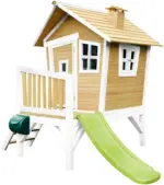 Bereit für ein neues Abenteuer in dem frechen Spielhaus aus Zedernholz in Braun und Weiß! Hier erleben große und kleine Kinder die verrücktesten Abenteuer während sie Ihnen von der Veranda aus zu winken. Über die kleine Treppe gelangen die Kids auf die Veranda von der sie einen Überblick über das Königreich haben. Durch die Türe geht es in das Innere des Spielhäuschens wo neue Entdeckungen besprochen und gezeigt werden können. Dort sind die Kleinen vor Wind und Wetter geschützt und auch bei Regen gerne im Freien. 4 Fenster lassen das Sonnenlicht in das ca. 264 x 203 x 177 cm (B x H x T) Haus. Und wenn die Abenteuer erlebt und die Kids müde sind, können Sie die weiße Rutsche runter sausen und neuen Träumen nachjagen. Außerdem ist noch ein Briefkasten vorhanden, der auf Schatzkarten und Briefe wartet. Der Blumenkasten an der Rückseite des Spielhauses unterstützt den schiefen Comic-Stil des Häuschens. Bunt bepflanzt verleihen die Blumen dem Haus Farbe - und müssen vom Schlossherren oder der Burgprinzessin gegossen werden. Dieser Artikel wird in unseren Filialen nicht ausgestellt, ist dort aber problemlos bestellbar. Bitte beachten Sie, dass abgebildete Dekoration im Lieferumfang nicht enthalten ist.