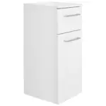 Mit diesem Unterschrank in Weiß mit HochglanzOberfläche verwandeln Sie Ihr Badezimmer in eine Wellnessoase. Das ca. 38 x 73 x 30 cm B x H x T große Möbel überzeugt mit Stil und Stauraum und entfaltet in Ihren vier Wänden seinen eleganten Look, geprägt von der glänzenden Oberfläche. Das Silberfarben der Bügelgriffe sowie der eckigen Füße ergänzt die Farbgebung des Korpus harmonisch und sorgt so für eine zeitlose Ausstrahlung. Im Inneren, hinter einer Drehtür, befindet sich ein verstellbarer Einlegeboden, auf welchem Handtücher und Waschlappen Platz finden. Genießen Sie ein Gefühl von stilvoller Ordnungmit diesem Unterschrank in Weiß mit HochglanzOberfläche! Badezimmer / Badmöbelsets & -serien / Badmöbelserien