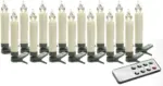 Dieses 16-tlg Christbaumkerzen-Set sorgt für tollen Glanz und eine weihnachtliche Stimmung in Ihrem Zuhause. Das Set aus robustem und zugleich stilechten Kerzen aus Kunststoff wird zudem mit einem praktischen Timer geliefert. Die Kerzen in Weiß mit glänzender Oberfläche haben einen Durchmesser von ca. 1,5 cm und eine Höhe von ca. 10 cm. Sie verfügen über LED-Lichter und sind batteriebetrieben. Batterien für die Fernbedienung sind im Lieferumfang enthalten, Batterien für die Leuchten sind separat erhältlich. Für den Innenbereich geeignet.