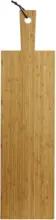 Servieren Sie jede Mahlzeit mit Stil - das Servierbrett ECO aus Bambus macht aus jedem Gericht ein echtes Highlight. Das Brett samt Griff ist etwa 16 x 1,5 x 62 cm (B x H x T) groß und mit einer Aufhängeöse versehen.