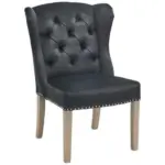 Dieser Ohrensessel in Schwarz strahlt königliches Flair aus. Der Textilbezug ist mit einer Samtoberfläche veredelt. Dadurch fühlt sich das Material besonders weich an. Die Steppung des Rückens der Innenseite verleiht der dezenten Optik eine exklusive Note. Auf der Rückseite glänzt ein Silberring aus verchromtem Gusseisen erstklassiger Chic, der sich auch in der Knopfnaht der Sitzfläche wiederfindet. Die 4 eckigen Beine sind aus massivem Eichenholzgefertigt. Das hochwertige Material gewährleistet langlebige Stabilität und bringt Frische in das Design. Der Stuhl lässt sich nicht nur toll ansehen, sondern Sie sitzen auch dank des Polyetherschaumkerns über lange Zeit komfortabel. Mit diesem markanten Ohrensessel in Schwarz beeindrucken Sie Freunde und Familie beim nächsten Festessen!Wohnzimmer / Sessel / Ohrensessel